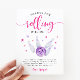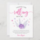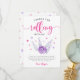 Söt bowling tema flicka födelsedagsfest tack-kort med vattenfärg illustration av en bowlingklot som träffar några käglor med rosa och lila stjärnor runtom. Texten säger "tack för att rulla med mig".