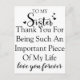 Den här designen är ett uppriktigt och älskande budskap till din syster. Med citatet "Till min syster Tack för att du är en så viktig Biet i mitt liv kärlek för alltid" är det ett perfekt sätt att uttrycka din uppskattning för hennes närvaro i ditt liv. Det är en påminnelse om det varaktiga bandet och den varaktiga inverkan hon har... Syster Birthday Gifts for Sister jul Mors dag Valentiness Gift for Sisters from Sister Brother