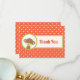 Ett tackkort från party med en illustration av en söt baby-apa med en nappar i munnen Inside i en oliv grönt cirkel. Bakgrunden är en orange och en vit polka punkt mönster. Baksidan har ett anpassningsbar-meddelande som du kan ändra eller lämna som det är.