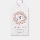 En elegant rosa tack-gavetyglabel med rustik monogramkrans.