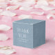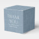 Tack för att du duschade gästerna med den här söta, enkla affischlådan med blå personlig. Med vit text (tack för att du inte är redigerbar, men den mindre texten är) i en bakgrund med en kambrayeffekt (observera - ingen riktig struktur här), är den här rutan perfekt för babyduschfavörer med mera. Designad för att samordna med Chambray babyduschsamlingen av Lea Delaveris Design kan den här babyduschförmånslådan innehålla namn, datum eller annan text. Hitta matchande inbjudningar till kamouflerdusch, party-artiklar och presenter i samlingen.