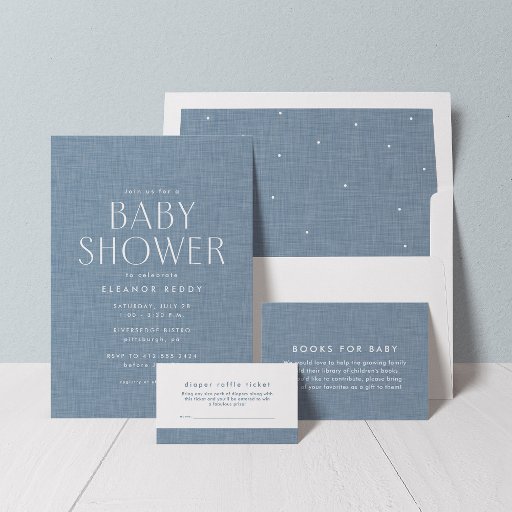 Tack för att du duschade gästerna med den här vackra, enkla klisterblåa personligen. Med vit text (tack för att du inte är redigerbar, men den mindre texten är) i bakgrunden med en kambrayeffekt (observera - ingen riktig struktur här), är den här etiketten perfekt för babyduschfavörer och annat. Designat att samordna med Chambray-babyduschsamlingen av Lea Delaveris Design, kan den här babyduschklisten innehålla namn, datum och mer. Hitta matchande inbjudningar till chambray-babyduschen, party-förråd och mer i samlingen.