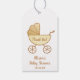 Ett sött gender-neutralt tack för att du vill ha märkre för dina babyduschgäster med en pastellvagn i gult och guld i baby och namn i snyggt i mor till be i ett -skript. Du kan anpassa texten på baby-vagnen med "tack", baby namn eller gender eller lämna blankt, samt duschdatumet på grund.