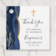 Den här bekräftelsenheten tackar för att du föredrar -taggen har en marin blå vattenfärgsagatdesign som trimmas med faux guld glitter. En faux foil kor i guld visas ovanför ord "Tack" i ett grått-handskript för kol mot vit bakgrund. Anpassa den med namn från hederskammaren, tillfälle och datumet i grått-kolet.