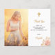 Ett modernt och elegantens tack. En chic vit bakgrund som dekorerats med en gyllene kor och rosa, blommigten ro guld. Anpassa och lägg till foto, tackkort och namn.