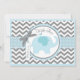 Chicgrått- och vitsparren skrivar ut med baby blue kontrast, och en gullig blåttelefant med fågeln perched på baksida- och för pilbåge 3D-look och bandklippning tackar dig att card.