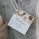 De här jordens blommigtar tackar dig för att taggar är perfekt för ett fallbröllop. Elegantens jordtonskonstruktion har vattenfärgsblommor i terracotta, koppar, bränd orange, persika, rosa och gräddvita toner med vintage boho stil. Anpassa dessa märkre med namn och datum. Ändra ordalydelsen till kostym under alla omständigheter.
