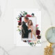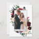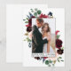 Elegant Watercolor Burgundy Rosa Blommigt och Grey Bride och Groom Kärlek och Tack Bröllop Photo Tackto You Card omfattar burgundy och rosa ros, blåa blommor, botaniskt grönt och eukalyptus löv.