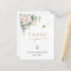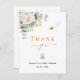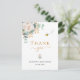En modern och elegant babydusch tack vare ditt kort. En vit chic bakgrund. Dekorerad med vita blommigtar, blommor (peony) och grönt vattenfärgade eukalyptus löv, sprig, grönenergi och faux guld sprigs. Svarta och gyllene brev. På framsidan står texten: Tack, namn och ett datum. Tillbaka: Mall för tackkort och namn.