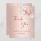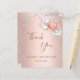 Ett tack för en 50-årsdag (eller vilken ålder som helst). En övertoningsbakgrund i ro guld. Dekorerad med ro guld och vita blommigtar och faux silver glitter, gnistor. På framsidan, ett skript med stora bokstäver och texten: Tack, text, titel och datum. Tillbaka: Anpassa och lägg till tackkort och namn.