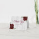Tack för bröllop med burgunderröda rosor i rustik kort