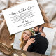 Fånga din speciella dags skönhet med vårt Elegant Script Photo Bröllop - tackkort. Med förfinad skripttypografi och utrymme för ett favoritfoto från bröllop blandas det klassiska romantik med personlig charm. Den minimalistiska layouten framhäver ditt foto medan det finstilta skriptet tillför en upphöjd, sofistikerad beröring. Perfekt för par som vill framföra ett hjärtligt tack till stil, detta kort skapar en varaktig och viktig saké som era gäster kommer att ta hand om. Anpassa med namn, bröllop-datum och ett personligt meddelande.