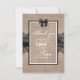 Tackkort för bröllopsceremoni i burlap, linne och spets.