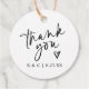Dessa moderna märkre som gynnar Tacken är designade i snyggtens runda form, med elegant och modern handstil med ett litet hjärta. Personlig med parets datum initialer och bröllop, lägger de till en chic och tankfull beröring till vilken bröllopsförmån som helst. Baksidan har plats för ett budskap från kort för att göra dessa ännu mer personliger. Perfekt för ett elegant, modernt utseende som gör dina tack-gåvor minnesvärda och speciella.