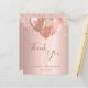 Ett tack för en Quinceañera, 15:e födelsedag. En ro guld-faux-metall tittar bakgrund färg. Med faux glitter-droppar, färgdroppstift och ballonger. På framsidan av stora mörken med färgaden ro skrev man skript och texten: Tack, text, titel och datum. Tillbaka: Mall för tackkort och namn.