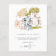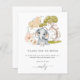 Ett budgetmässigt prist mindre än 4,5 x 5,6 tum alternativ. Finns i ett SEMI-GLOSS 110 lb-kort LAGRAR, vilket är standardalternativet (tjockare för inbjudningar), ELLER SATIN AVSLUTAR 80 lb PAPPER LAGRAR (perfekt för bilagor). Kuvert är ett extra som tillval och är något större än det storleka kortet. Säg tack efter din barndusch med safari cuteness med den här godhjärtade elefanten med blommigtar, löv, träd och ballonger. Anpassa enkelt till din egen ord av tack och namn. En vit bakgrund finns på båda sidor. Du kan också ändra färgen typsnitt och text och bakgrund om du vill anpassa ytterligare genom att klicka.