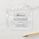 Ett enkelt och elegantens sympati tack för ditt kort. En faux silver metallisk tittar bakgrund, ett vitt ram, faux glitter damm och en fjäril som vattenstämpel både framifrån och bakifrån. Anpassa och lägg till tackkortet. Svart text.