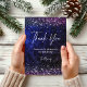 Chic blå lila faux glitter monogram tack. Skräckande glitter och nedladdningsbara chic tack vare ditt kort. Perfekt för att skicka ut till familj eller vänner för julhelgen eller något annat tillfälle som bröllop, födelsedagar, babyduschar, möhippor och möhippor. För att göra det speciellt i extra är det förskönat med vackra faux glitter. Denna design kan också överföras till vilken produkt som helst på zazzle. Du kan anpassa den med egen text och information. OBSERVERA: Det här är platt tryckt grafik - ingen riktig glitter, juveler eller upphöjda delar