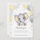 Låt dina gäster få veta hur tacksamma ni är för den här vackra babyduschen tack vare kortet gult och grått baby elefant med ballonger silver stjärnor och måne. Underbar för könsneutral babydusch. Baksidan har vattenfärg för mjuk gult i form av en blandning. Anpassa enkelt genom att klicka på "Anpassa".