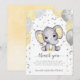 Låt dina gäster få veta hur tacksamma ni är för den här vackra babyduschen tack vare kortet gult och grått baby elefant med ballonger silver stjärnor och måne. Underbar för könsneutral babydusch. Baksidan har vattenfärg för mjuk gult i form av en blandning. Anpassa enkelt genom att klicka på "Anpassa".