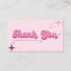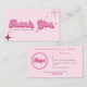 Ett återinspirerat tack för att du har ett kort med en lekfull rosa med fet, nostalgisk typografi. Perfekt för små företag, framsidan visar ett dynamiskt "Tack"-meddelande med dubbla stjärnor. Baksidan är anpassade med din logotyp, medieinformation om social och en rabattkod som uppmuntrar upprepade kunder. Det här kortet är idealiskt för att du vill lägga till en roligt och vintage i ditt varumärkes förpackning, och det hjälper dig att uttrycka tacksamhet samtidigt som du främjar framtida förlovning. Perfekt för butischer, handgjorda butiker och företagare inom kreativet