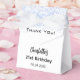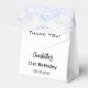 En elegant och glamorös 21:a (eller någon annan ålder) födelsedagsfest. En chic vit bakgrund med ljusblå faux glitter, gnistor. Med texten: Tack! Anpassa och lägg till ditt namn. Namn är skrivet med ett handskript i trendiget stil.