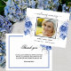 En enkel sympati och elegant tack för att du fick ett kort med foto. En vit bakgrund, ljusblå ro, blommigtar. Anpassa och lägg till tackkortet. Svart text.