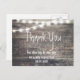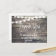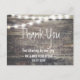 Rustiskt trä och ljus bröllop tack vare ditt kort, vintage grått-träbakgrund som dekorerats med en sträng av ljus. Perfektens bröllopsinbjudan till bröllop med temat ljus bröllop nattetid, ladtema, trädgårdstema, bröllop utomhus med tvilling ljus.
