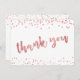 Lägg till lite gnistra i dina uppskattningsanteckningar med ro-guld-penselskriptet Tack. Kort med en konetti gräns i gnistran ro. Baksidan kan förskrivas med ett tackmeddelande eller så kan exempeltexten tas bort för att lämna området tomt för handskrift.