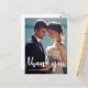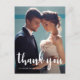 Elegant och modernt skript bröllop tackar dig för fotovykortet med ett tack och returadress på baksidan av kortet. .