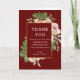 Den här eleganten är fylld med Tack. Ditt kort har guld ram med vattenfärgen ro och grönt gren som mallbakgrund. Ord "Tack" skrivs med vitt teckensnitt på mörkens röda bakgrund. Parets namn, datum och ställe i bröllop ingår också i svart på vit bakgrund. Ett foto av paret med elegant läggs till på kortet tillsammans med namn och datum och ställe på bröllop under detta.
