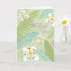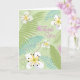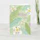 Ett tackkort som innehåller sommar och ljusa illustrerade tropiska löv och blommor. Blanka för ditt eget personliga meddelande.