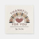 Napkins med valfri Thanksgiving av personlig som säger THANKFUL FOR DIG omringad av en kalkonluddedesign och hjärtan i nyanser av hösten färg. Textteckensnittet stil, storlek, färg och placering samt all inslag för design kan ändras för att passa dina behov genom att klicka på fliken CUSTOMIZE. Kontakta designern om du vill ha den här designen på en annan produkt.
