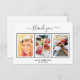 En elegant, enkel sommar 21:a födelsedag (eller godisålder) Tack för att du får personlig med ditt eget foto. Lägg till 3 av dina födelsedagsfoton, lodrät storlekt, ett datum, namn och tackkortet. En vit chic med svart text och ett vitt ram. Texten: Tack på framsidan och namnen på baksidan skrivs med ett snyggt-handskript med dekortecken.