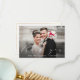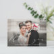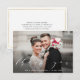 Ett modernt bröllop-fotokort med ett underbart skript med foto och elegant vitt. Lägg till ett personligt tackmeddelande så kan du ladda upp ett eget foto från bröllop.