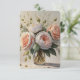 Kortets framsida har en mjuk baksida, kanske i en mjuk nyans av rosa eller serenlavender. I mitten ger en känslig illustration av en bukett med vattenfärgade blommor - ro, peonier och lavender - kortet. Blommorna återges i mjuka, blomande drag, ge buketten en graciös, hårfin känsla.