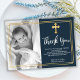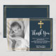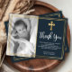 Enkelt, elegantens marinblå döpning och baptism tack vare dina kort. Tack till familj och vänner med den här moderna personligen tack för att du religiösor ett platt kort. Den har handskript med bokstäverna "Tack", runt dubbla faux guld foil ram på marin bakgrund. Det här vackra fototackkortet blir också perfekt för baptism/döpning/namnceremoni/bekräftelse och heligans gemensamma tack för att du kort för pojke eller flicka. 3354