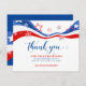 Tack för dagens blå typografi och en amerikansk flagga med stars och stripes i rött vitt och blått. Coola modern patriotisk design.