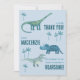 Dags att tacka dina gäster för en vild födelsedagsfest! En rolig skara söta dinosaurier, redo att anpassas med ditt barns namn och tackmeddelande. Perfekt för pojke eller flicka i alla åldrar. Baksidan har ett matchande dinosauriemönster. Originalkonst av Nic Squirrell.