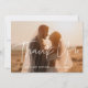 Visa tacksamhet och tack till gästerna för deras närvaro och vackra gåvor med det här anpassadet-fotokortet med en modern typografi. Modern, enkel och ren: använd den här minimalistiska handskrivna designen för ditt bröllop-kontorsmaterial. Helt anpassade färg.