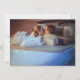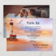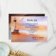 Ett romantiskt tackkort från bröllop med en målning av ett fyr på stranden med fiskmås, vid solnedgången. På andra sidan är ditt eget favoritfoto från bröllop.