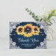 Tack för ditt kort - Blå solrosblomma Bröllop