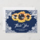Tack för ditt kort - Blå solrosblomma Bröllop