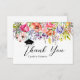 Tack för ditt kort, Colorful Wildblomma Vår. Den här designen har en arrangemang av vattenfärgblommor i skuggor av rosa och lila, gult i trädgårdsgrej.