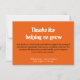 Gratulerar till din fantastisk med det här tackkortet för elegant som innehåller ett tema för orange av blommigt och ett uppriktigt budskap: "Tack för att du hjälper mig att växa." Anpassa den med din skola namn och ta examen för en tankfull och minnesvärd hjärtefråga. Perfekt för läraruppskattning party, gåvor vid årets slut eller klassrum firande. Den mjuka blommigtens utformning i orange (färg-kod #EF5B0A) ger ett varmt och glatt tryck på ditt meddelande.