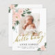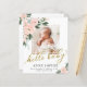 Fantastiskt blommigt vattenfärg, fotofödelsemeddelande och tack vare ditt kort. Enkel att anpassa med foton och detaljer från baby. Kontakta mig via chatta om du har frågor om teckningen eller behöver anpassa den. OBS! Kontakta Zazzle Customer Care direkt https://help.zazzle.com/hc/en-us/articles/221463567-How-Do-I-Contact-Zazzle-Customer-Support- om du behöver hjälp med beställningar, frakt, produktinformation osv.