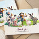 Säg tack i jordbruksinspirerad stil med den här vackra babyduschen tack vare ditt kort. Med söta illustrationer av lingdjur som grisar, kor, får, åsnor, gäss och tuppar, tillsammans med lekande stämningar av Oink, Baa, Moo och Cock-a-Doodle Doo. Anpassa den enkelt med din party-information och gör den unik för din speciella dag med hjälp av knappen "Anpassa den" för textformatering och placeringsalternativ. Det här tackkortet är dessutom perfekt för att samordna med andra jordbruksmatade party-förråd för ett sammanhängande utseende och en känsla för din babydusch firande. Visa din uppskattning för dina gäster på ett roligt och minnesvärt sätt med det här charmerande husdjuret tack ditt kort.