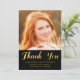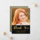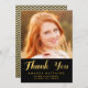 Tack för studenten-foto-kortet för din högskolegrad med Faux-guldfoil Calligraphy. Utformning av Elke Clarke© finns på www.zazzle.com/monogramgallery. Anpassa överläggningsdesignen med foto och använda med ord "Tack" i en faux guld-folie (utskriven fotoeffekt). Svart och guld-chevron mönster på baksidan kan tas bort och du kan lägga till mer text. Annan tillgänglig färg.