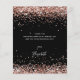Ett feminin- och elegant födelsedagstack. En svart bakgrund färg. Med ro guld konetti. På framsidan, stora bokstäver och texten: Tack. Tillbaka: Anpassa och lägg till tackkort och namn. Namn är skrivet med ett modernt handskript i stil.