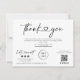 Det här moderna företagstack som du har med ett hjärtteckensnitt är det perfekt sättet att visa uppskattning för dina värderade kunder. Anpassa den med ett hjärtligt meddelande och en speciell kupongkod för att få dina kunder att känna sig verkligt uppskattade. Gör det enkelt för dina kunder att hålla kontakten med dig genom att lägga till medieinformation och kontaktinformation för social. Det här tackkortet innehåller dessutom en QR-kod som du kan använda för att lämna en recension.